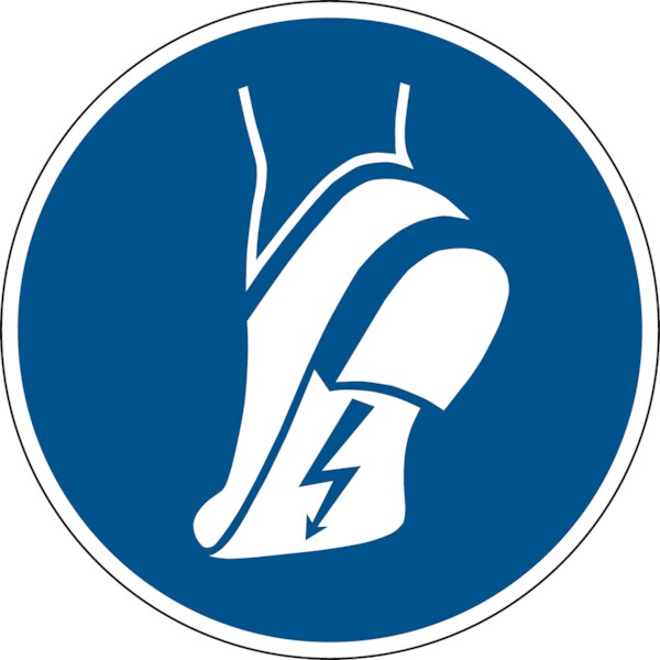 Gebotszeichen 'Antistatisches Schuhwerk benutzen' (M032), gem ASR A1.3 (DIN E... Aufkleber Folie 10cm 1 Stück
