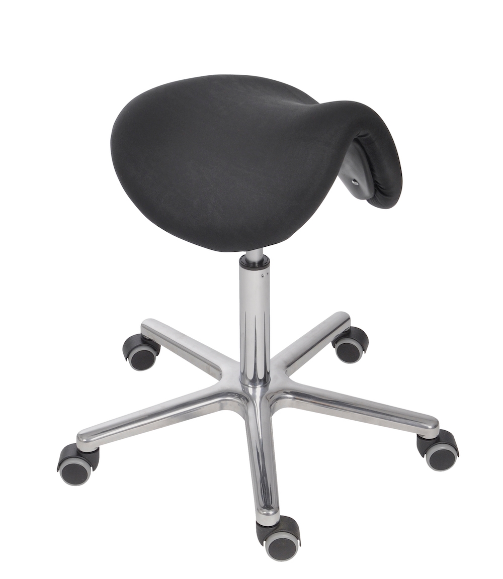 PROREGAL Antistatischer Sattelhocker Lexington, ESD-Sitz & Sitzneige, Sitzhöhe 53-72cm, Kunstleder-Sitz, Aluminium-Fußkreuz, Rollen