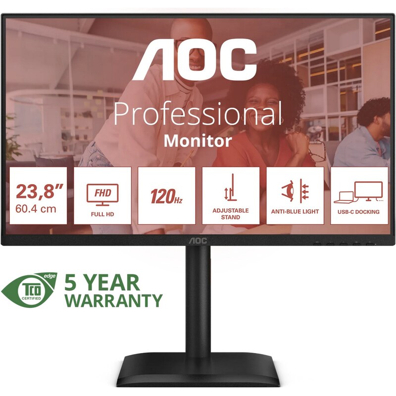 AOC 24B3CF2 24 Zoll Full HD Monitor, Lautsprecher, höhenverstellbar 1920x1080, 100 Hz, HDMI, USB-C 65W PD, USB Hub schwarz