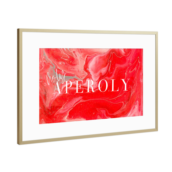 Poster mit Rahmen Gold "Holy Aperoly" artboxONE - Typografie,Essen & Trinken,Abstrakt - Alkohol,Getränk,Cocktail,Aperol,Typo,Typografie,Trinken