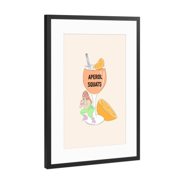 Poster mit Rahmen Schwarz (Metallic) "Aperol-Kniebeugen" artboxONE - Essen & Trinken,Essen & Trinken / Alkohol,Lustig