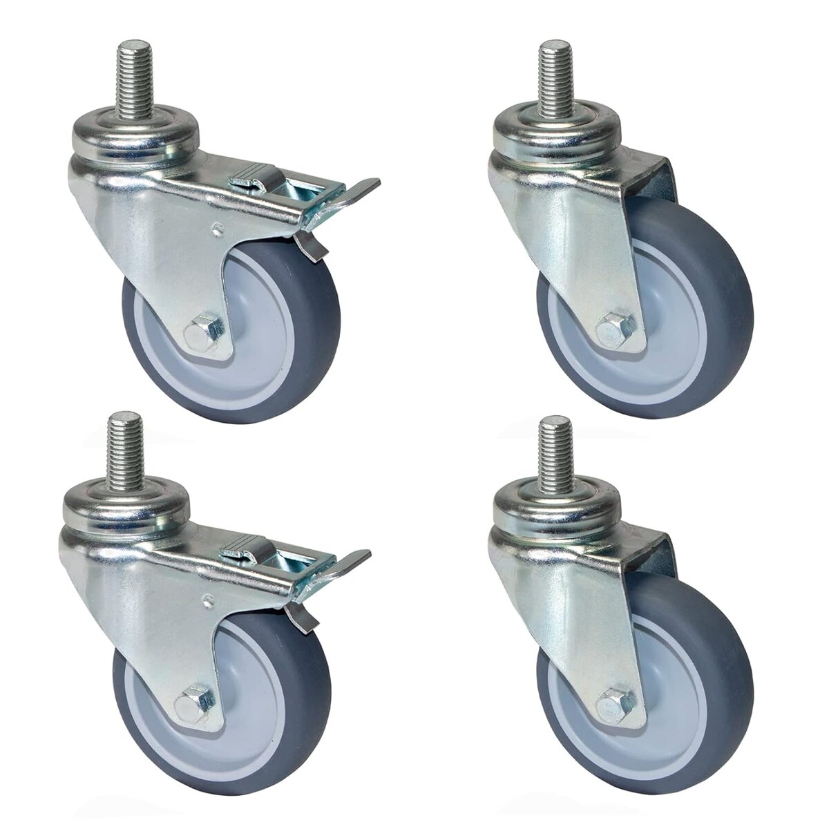 PRIOstahl Apparaterollen Grau 75mm mit Rückenloch + Stift M10x25mm 2x Lenkrollen + 2x Bremsrollen