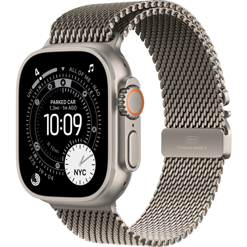 Apple Watch Ultra 3 Smartwatch, titan, 49 mm, Milanaise Armband Titan Natur M