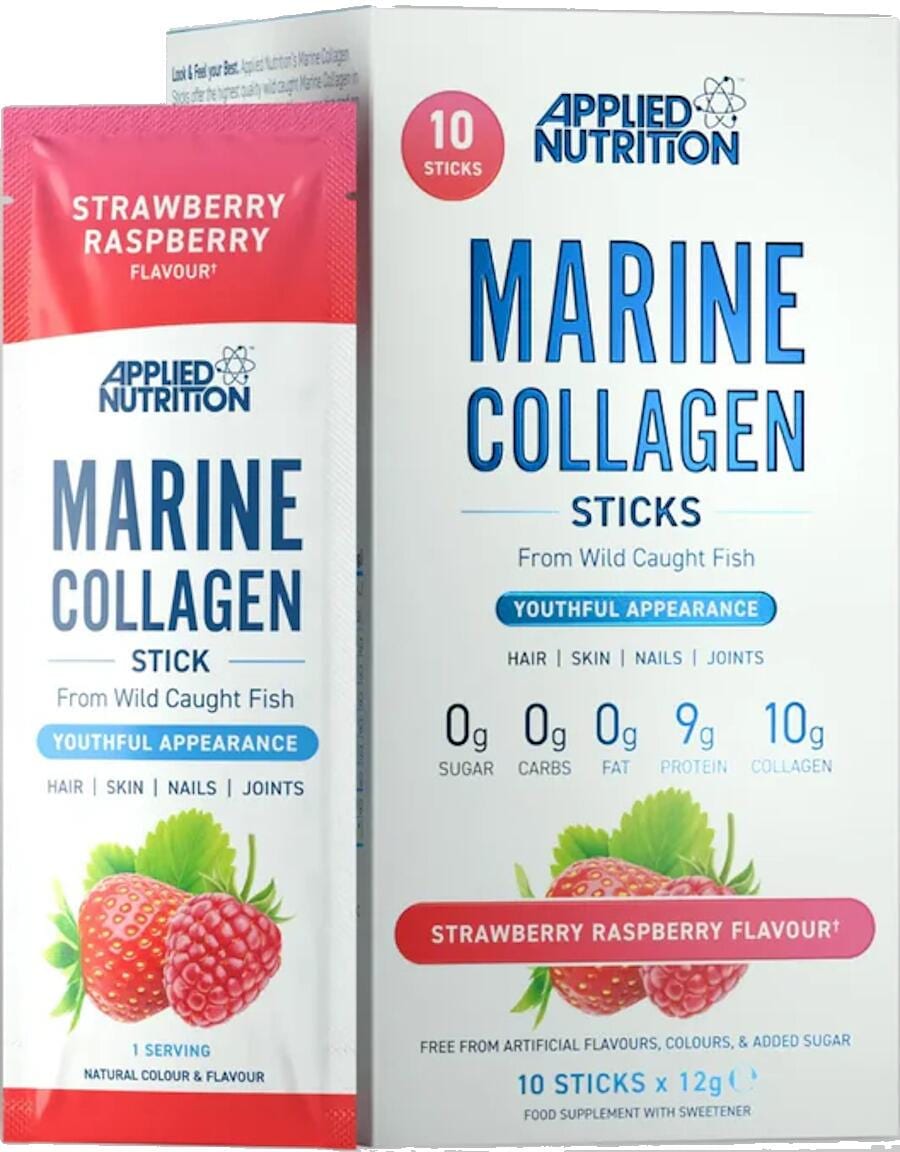 Applied Nutrition Marine Collagen, 10 x 12 g Sticks, Strawberry Raspberry