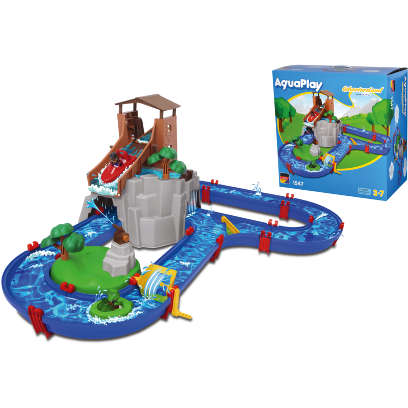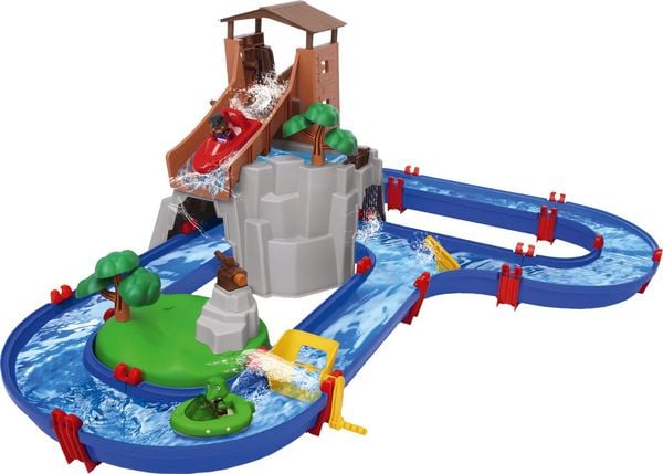 AquaPlay 1547 - Wasserbahn Adventure Land mit Berg, Turm und Stausee, Spieleset inkl. 2 Tierfiguren, Motorboot und Speedboot