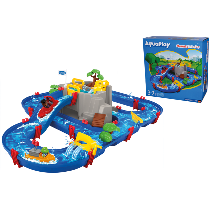 AquaPlay - Wasserbahn Set Bergsee - 42-teiliges Spieleset mit Bergsee, Wasserfall und geheimer Höhle, Wasserspielspaß inkl. 3 Tierfiguren, 2 Booten,