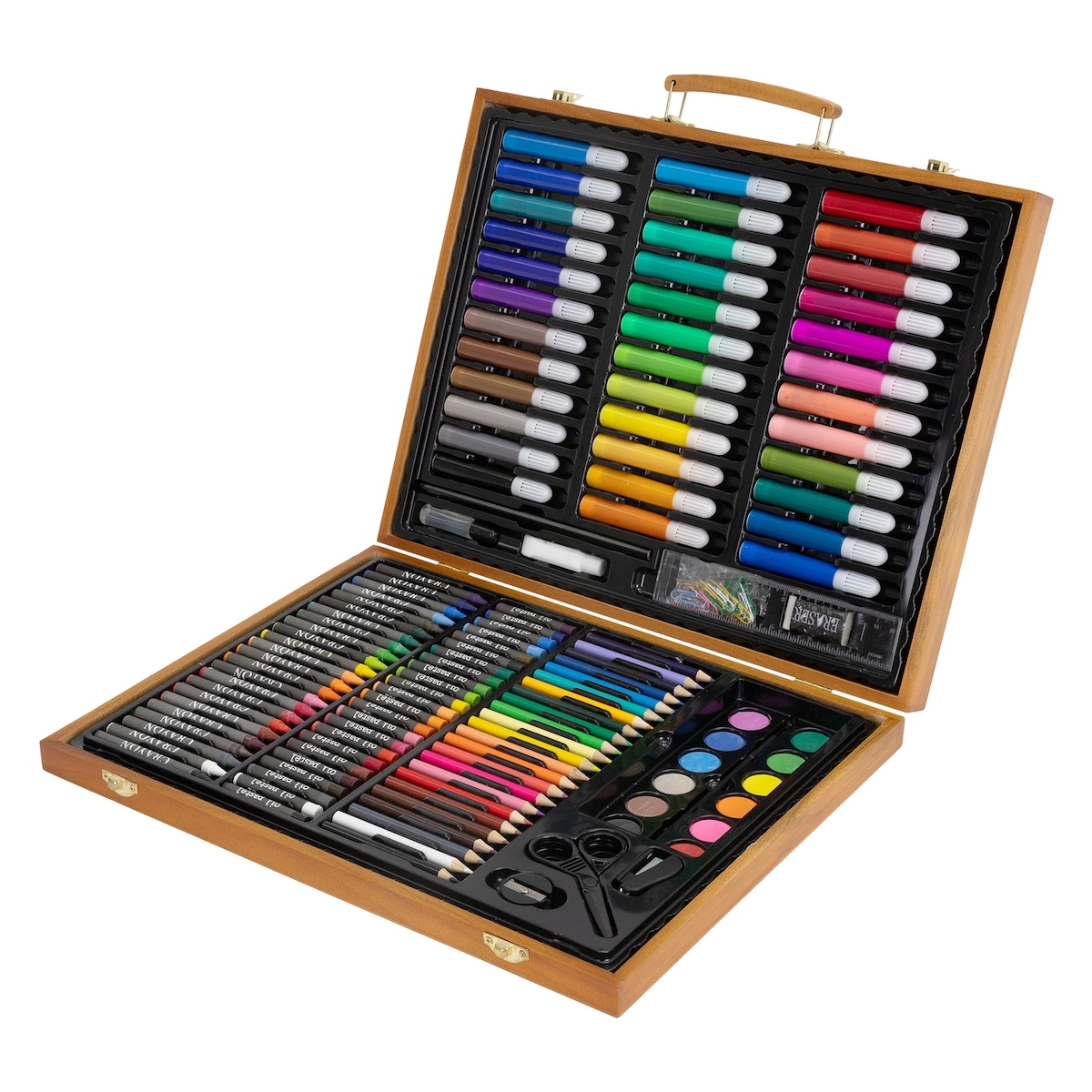 ECD Germany Malset 150-teilig – Holz Malkoffer, Künstler-Set mit Acrylfarben, Farbstiften, Aquarellfarben & Zubehör, Zeichnen & Kunstbedarf