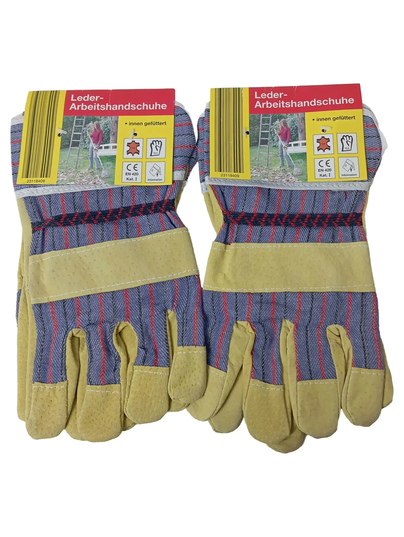 MARKENLOS Leder-Arbeitshandschuhe gefüttert Größe 10,5 Beige Blau Rot Garten Bau Handwerk