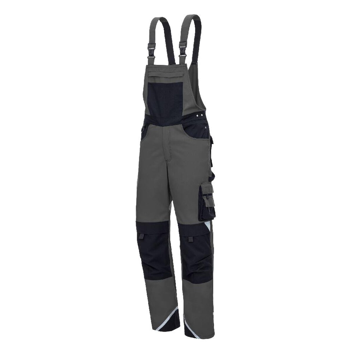 Qualitex Arbeitshose - moderne Latzhose IRON aus Lyocell, Cordura & Stretch - Reflexelemente - in Farbe: grau/schwarz - Herren: 72 - Damen: 66