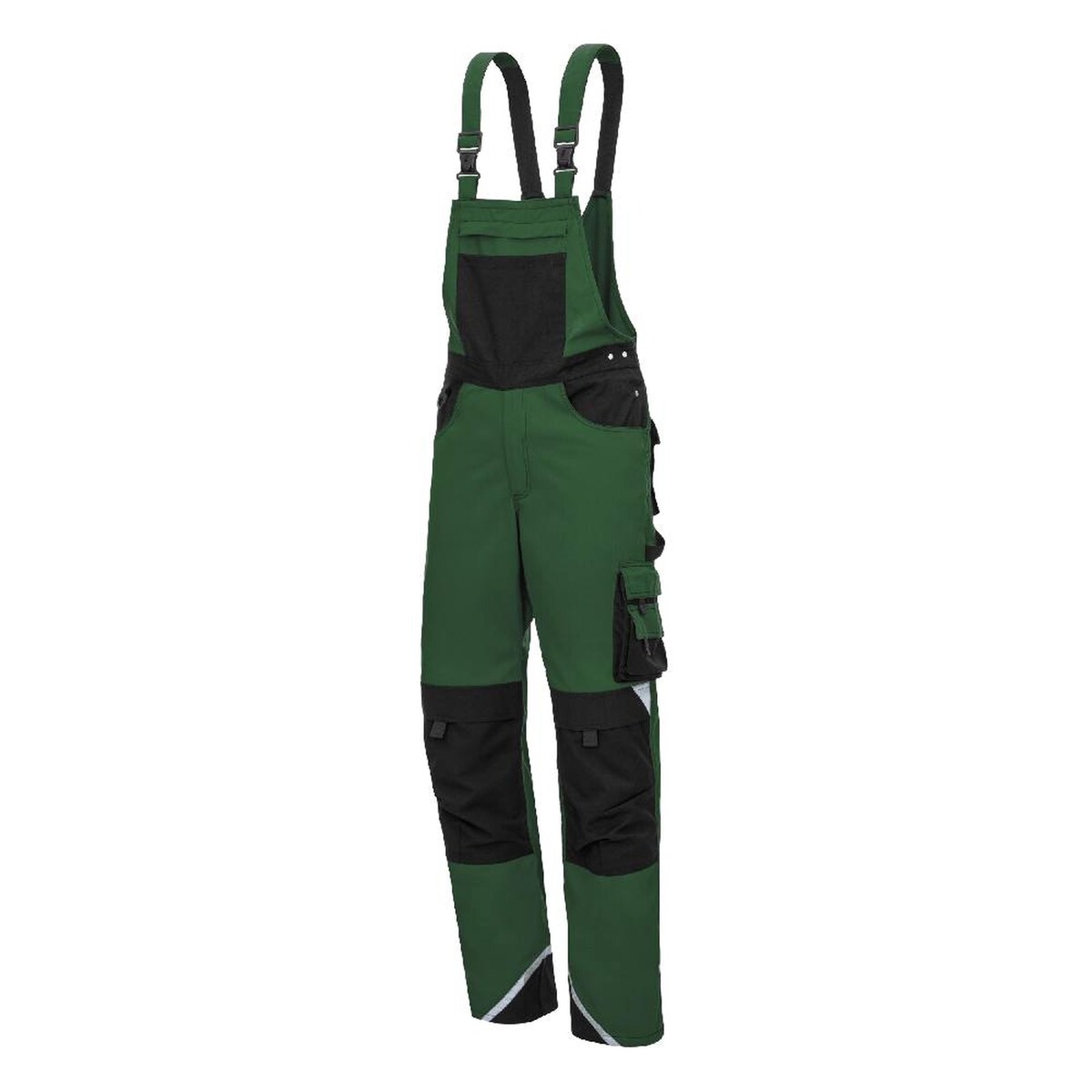 Qualitex Arbeitshose - moderne Latzhose IRON aus Lyocell, Cordura & Stretch - Reflexelemente - in Farbe: grün/warngelb - Herren: 23