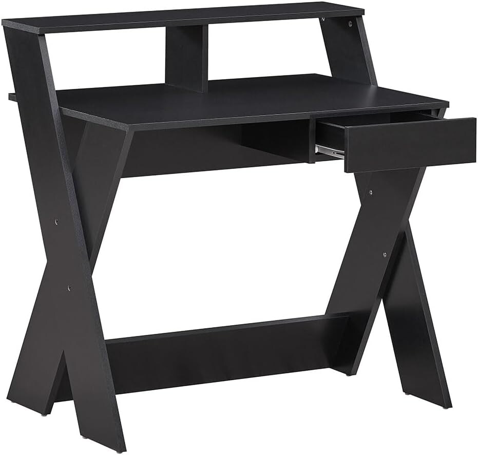 COSTWAY Computertisch mit Schublade, Schreibtisch mit Monitorerhöhung, Arbeitstisch in X-Form aus Holz für kleine Räume, Zuhause und Büro