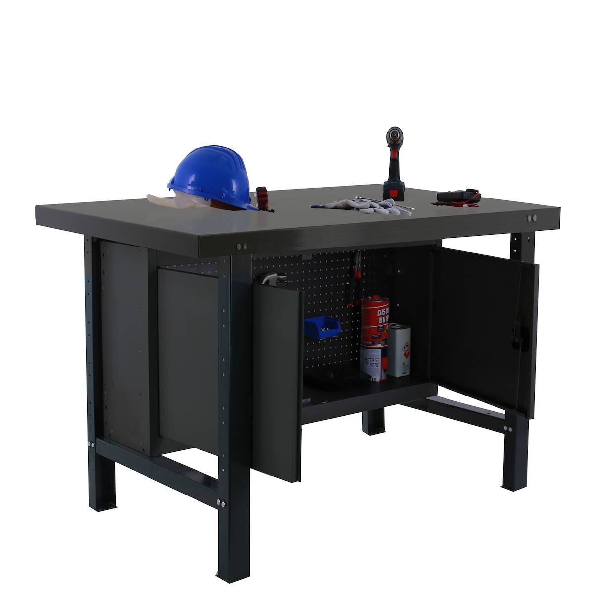 PROREGAL Werkbank BUFFALO METAL mit Schrank | HxBxT 83x120x73cm | Traglast 600kg | Anthrazit | Werktisch Arbeitstisch Arbeitsbank