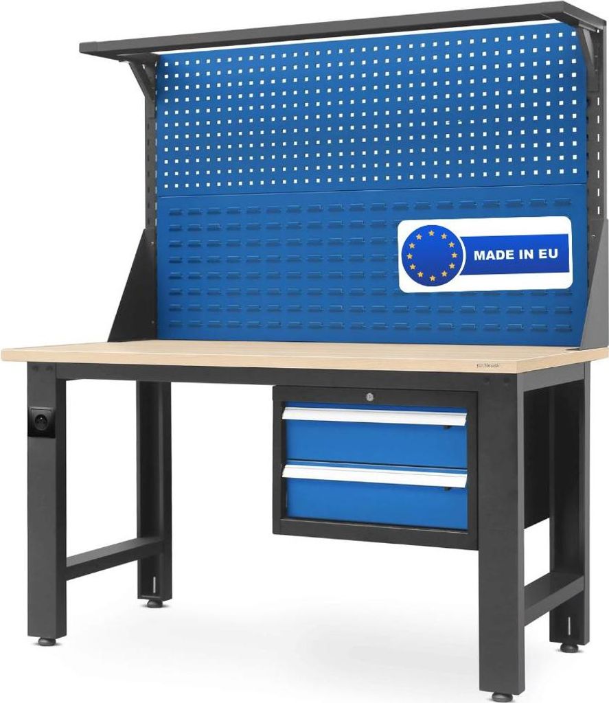 Werkbank Werkstatt ROBI - Lochwand , 2 Schubladen | Werktisch Montagewerkbank Arbeitstisch Werkstatteinrichtung Packtisch, 170x150x75cm Anthrazit-B...