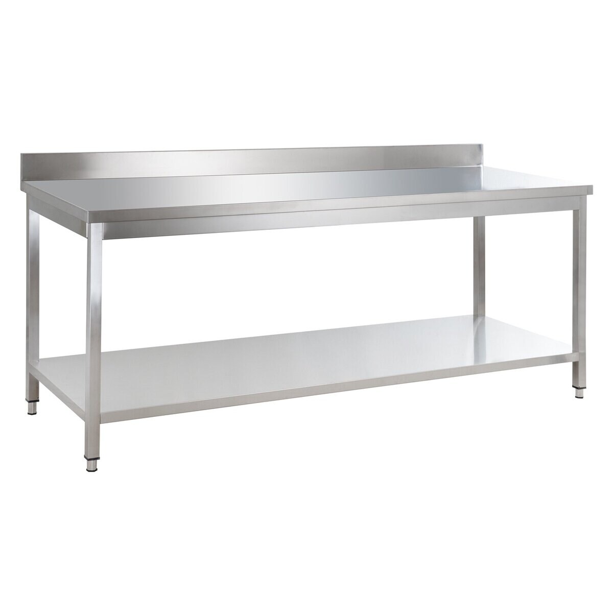 GastroHero Edelstahl Arbeitstisch Basic 180x60 cm mit Grundboden & Aufkantung Chrom-Nickel-Stahl AISI201 verstärkte Arbeitsplatte höhenverstellbar