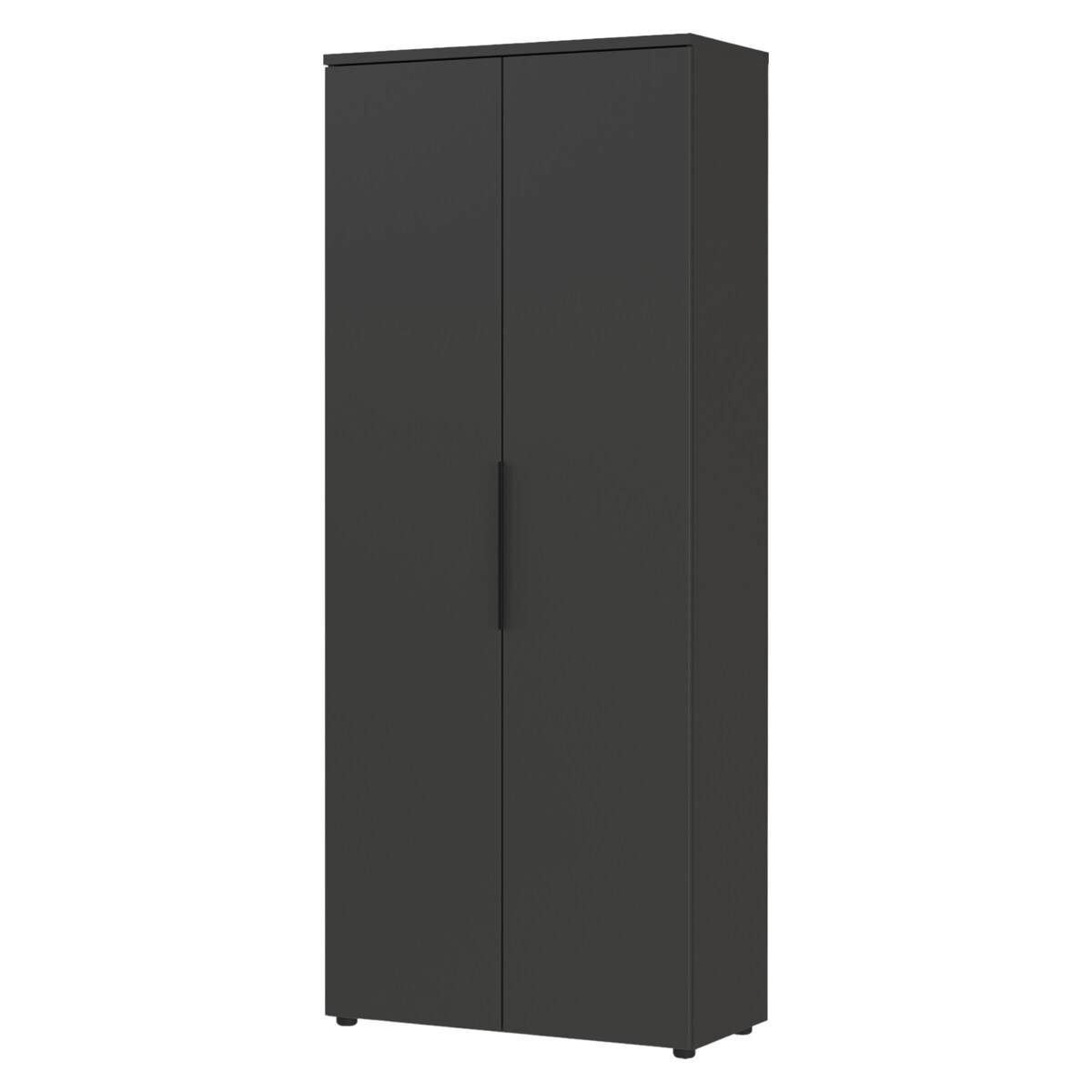 bümö Space Aktenschrank Holz, Mehrzweckschrank 81 cm breit in Graphit - Regal mit Türen für 5 OH, Büro Schrank groß als Möbel für Arbeitszimmer,