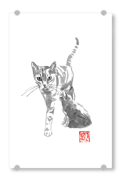 Acrylglasbild "Cat and mother" artboxONE - Natur - Cat,Neko,Sumie,Japan,Katze,Animal,Tier,Pat,Schwarzweiß,Blackandwhite