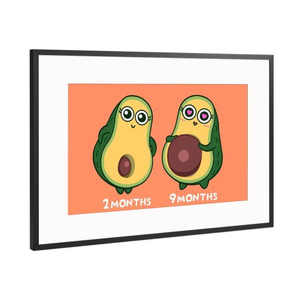 Poster mit Rahmen Schwarz (Metallic) "Pregnant avocados" artboxONE - Essen & Trinken,Comic - Avocado,Pregnant,Mother,Baby,Birht,Lustig,Funny,Schwanger