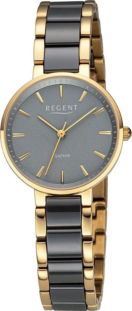 Regent Keramik Damen Uhr Armbanduhr Quarz gold schwarz Metallarmband D2URF1465
