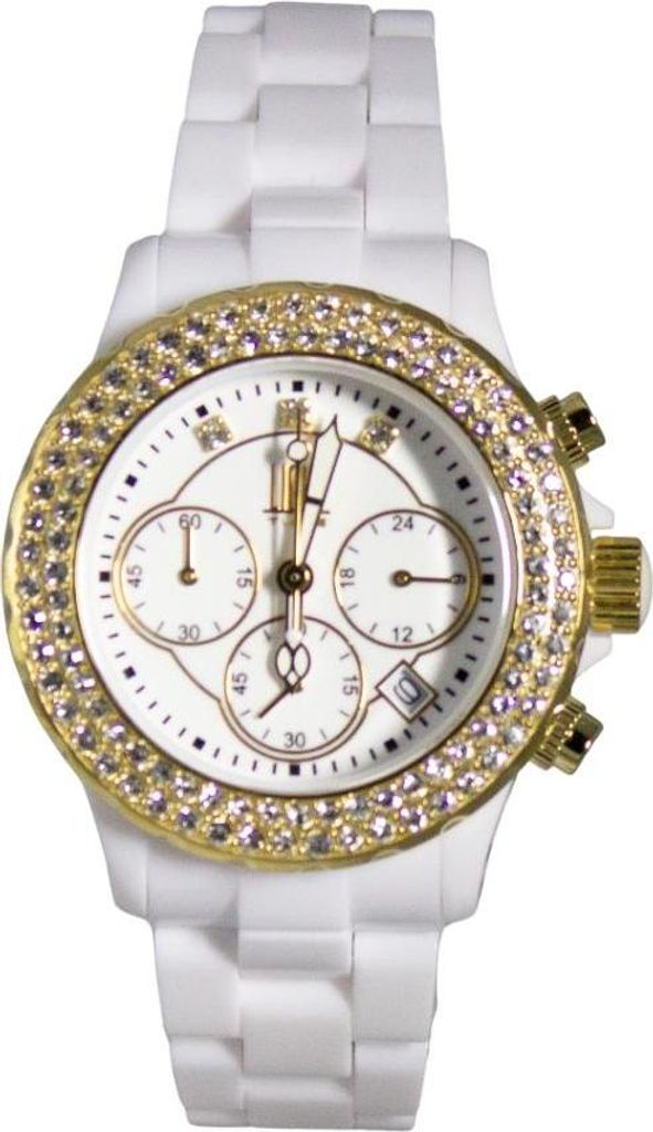 Light Time Armbanduhr Chronograph Damen Kunststoff Datum Weiß Gold Zirkonia L074B