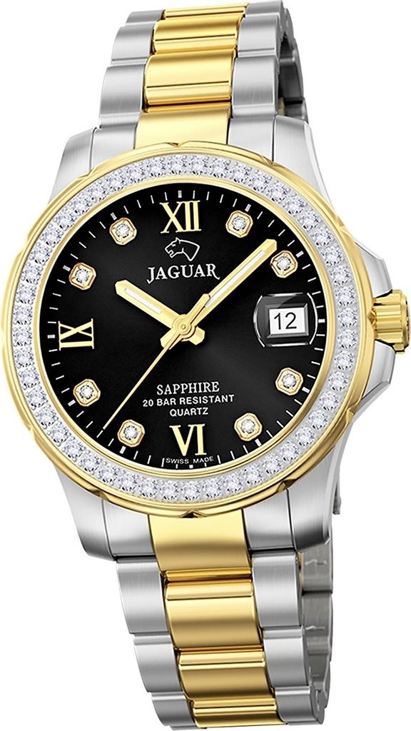 Jaguar Edelstahl Damen Uhr Analog Luxus Armbanduhr silber gold Executive D2UJ893/4
