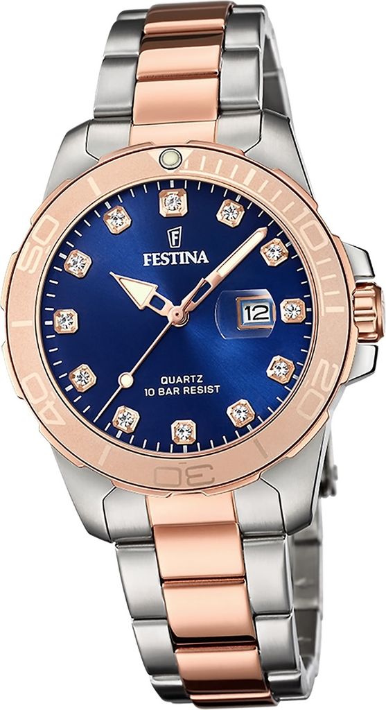 Festina Edelstahl Damen Uhr Armbanduhr silber gold Fashion D2UF20625/1
