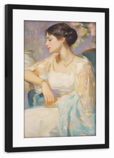 Poster mit Rahmen schwarz "A woman sitting in a blue armchair" artboxONE - Menschen,Liebe,Fashion,Für Mama