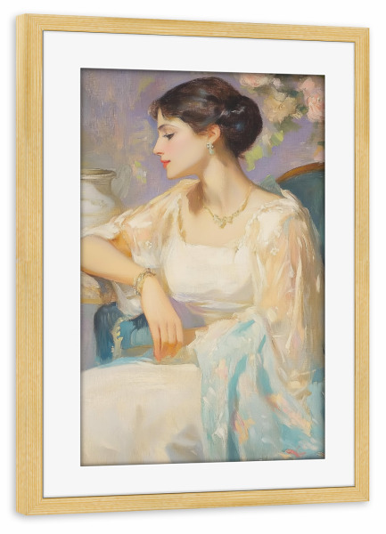 Poster mit Rahmen kiefer "A woman sitting in a blue armchair" artboxONE - Menschen,Liebe,Fashion,Für Mama