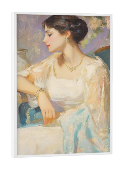Poster mit weißem Rahmen "A woman sitting in a blue armchair" artboxONE - Menschen,Liebe,Fashion,Für Mama