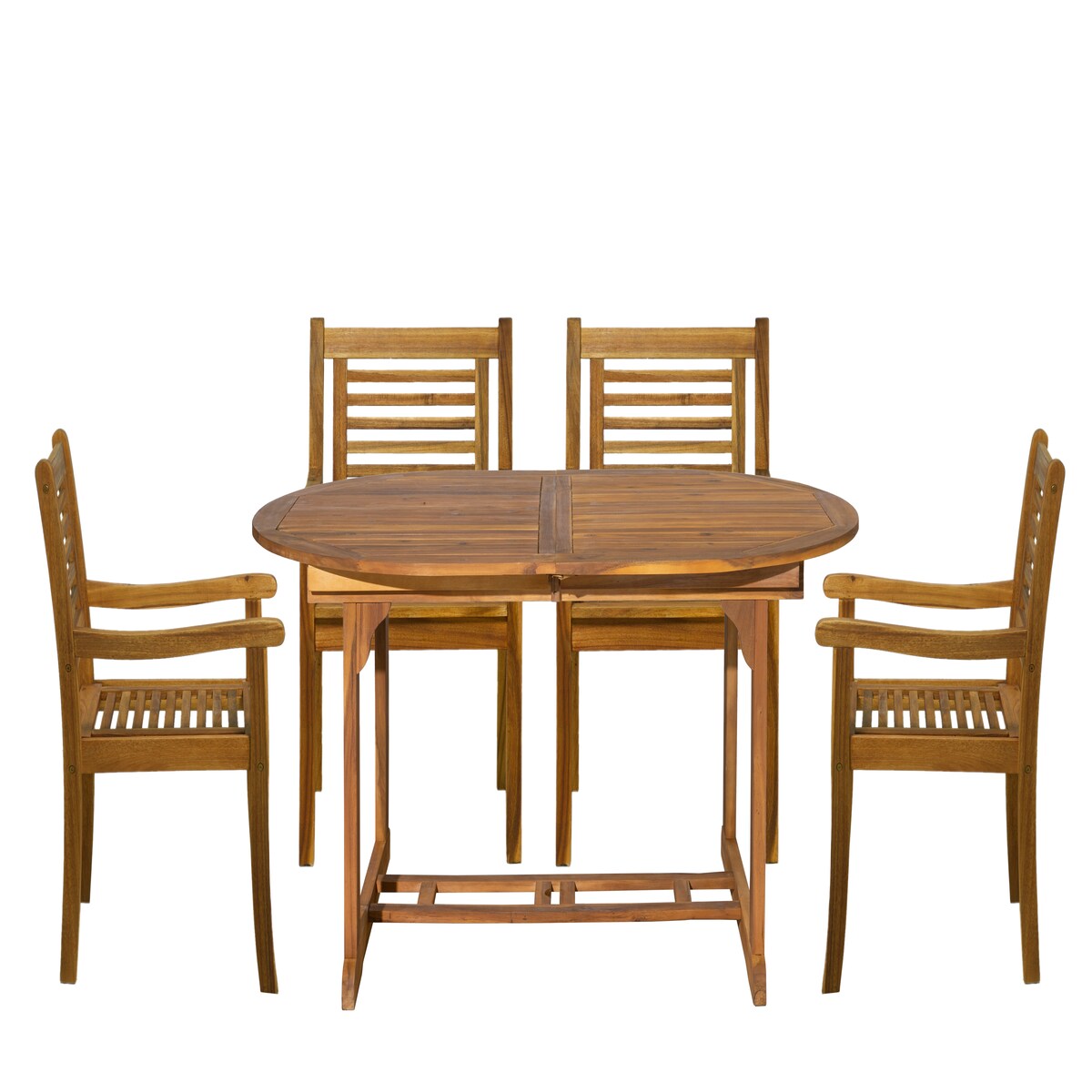 Möbilia 4-tlg. Garten-Sitzgruppe | 1 Tisch, 4 Armlehnenstühle | Akazie-Holz natur | 31020017 | Serie GARTEN