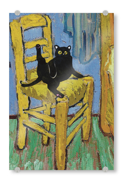 Acrylglasbild "Cat On A Chair" artboxONE - Tiere - Cat on a chair,Animal,Modern art,Parody,Humor,Black cat,Contemporary,Van gogh,Collage