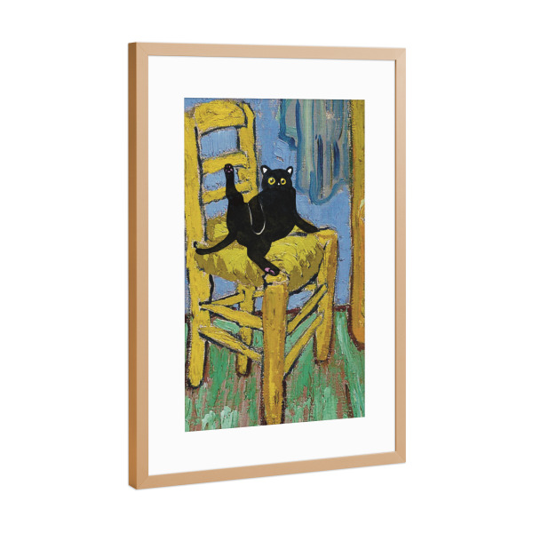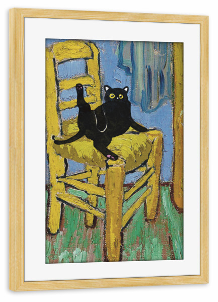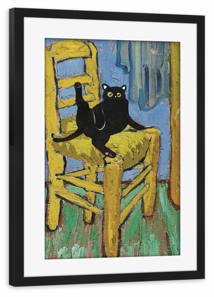 Poster mit Rahmen kiefer "Cat On A Chair" artboxONE - Tiere - Cat on a chair,Animal,Modern art,Parody,Humor,Black cat,Contemporary,Van gogh,Collage