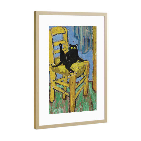 Poster mit Rahmen Gold "Cat On A Chair" artboxONE - Tiere - Cat on a chair,Animal,Modern art,Parody,Humor,Black cat,Contemporary,Van gogh,Collage