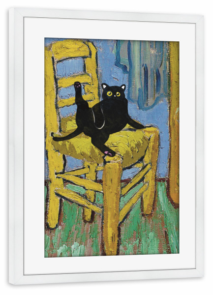 Poster mit Rahmen weiß "Cat On A Chair" artboxONE - Tiere - Cat on a chair,Animal,Modern art,Parody,Humor,Black cat,Contemporary,Van gogh,Collage