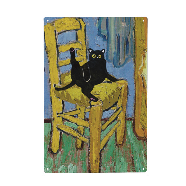 Metall Poster "Cat On A Chair" artboxONE - Tiere - Cat on a chair,Animal,Modern art,Parody,Humor,Black cat,Contemporary,Van gogh,Collage