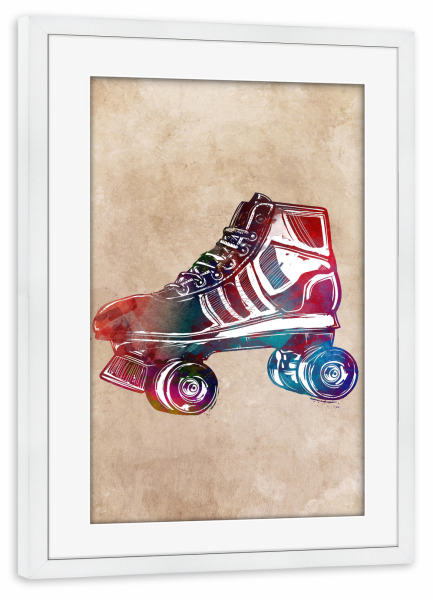 Poster mit Rahmen weiß "Roller skates sport art" artboxONE - Sport,Sport / Sommerspiele - Sport,Roller,Skate,Skater,Active,Shoes,Schuhe