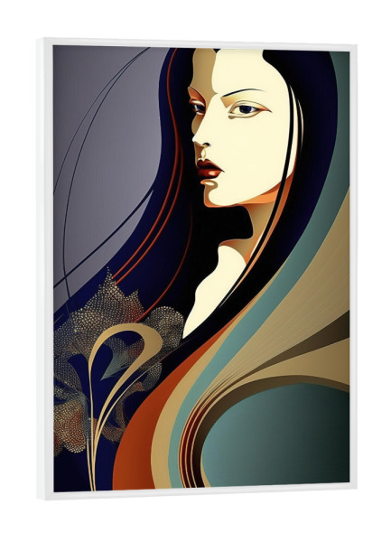 Poster mit weißem Rahmen "Porträt einer Frauen" artboxONE - Abstrakt,Menschen - Frau,Porträt,Lange haar,Elegant,Abstrakt,Art deco,Model