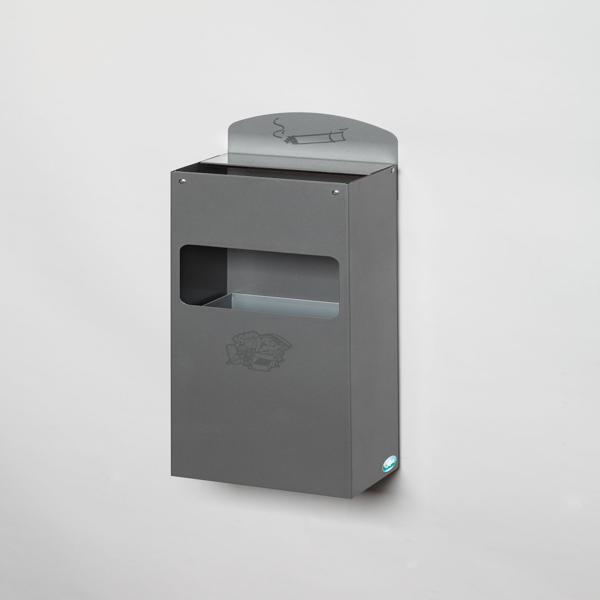 PROREGAL Eckiger Kombiascher mit Einwurfblende | 15 Liter, HxBxT 54x30x14cm | Verzinkter Stahl | Silber | Mülleimer Aschenbecher Abfalleimer