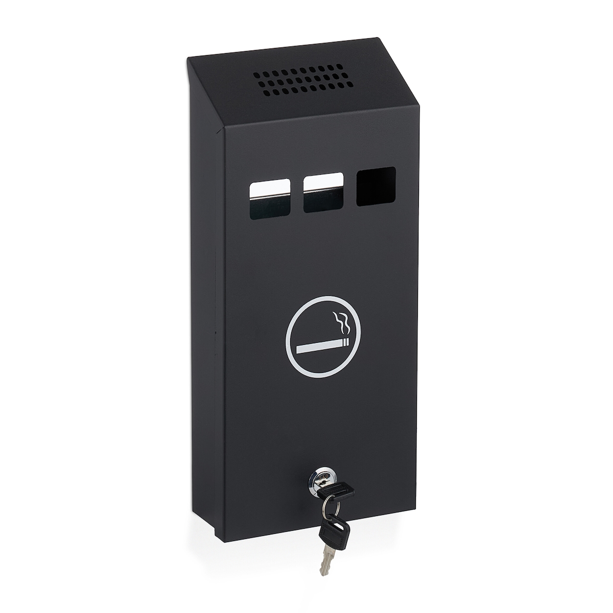 Relaxdays Wandaschenbecher für draußen, verschließbar, Metall, Aschenbecher Wandmontage, HBT: 32,5 x 15 x 6 cm, schwarz