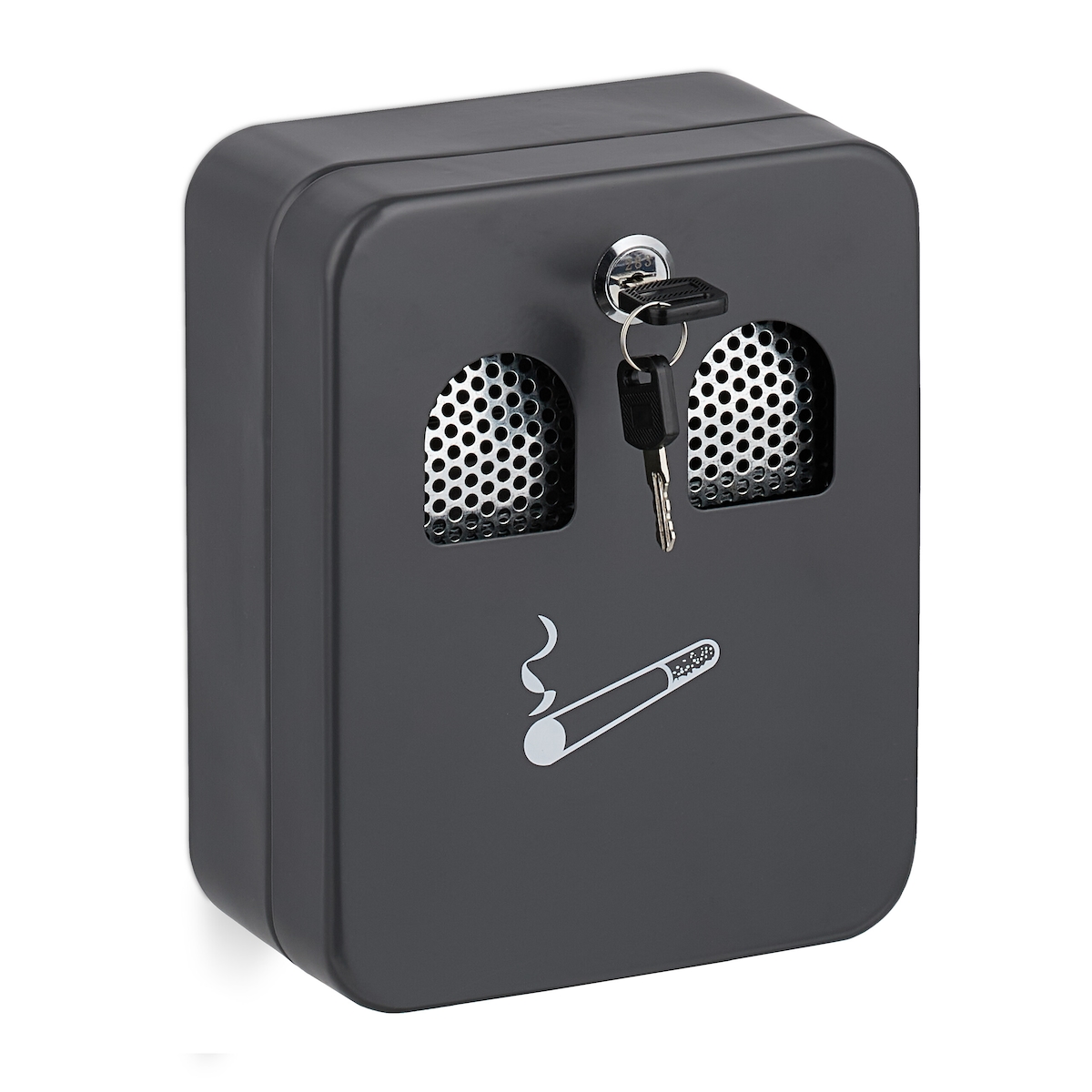 Relaxdays Wandaschenbecher für draußen, abschließbar, Metall, Aschenbecher Wandmontage, HBT: 20 x 16 x 8,5 cm, anthrazit