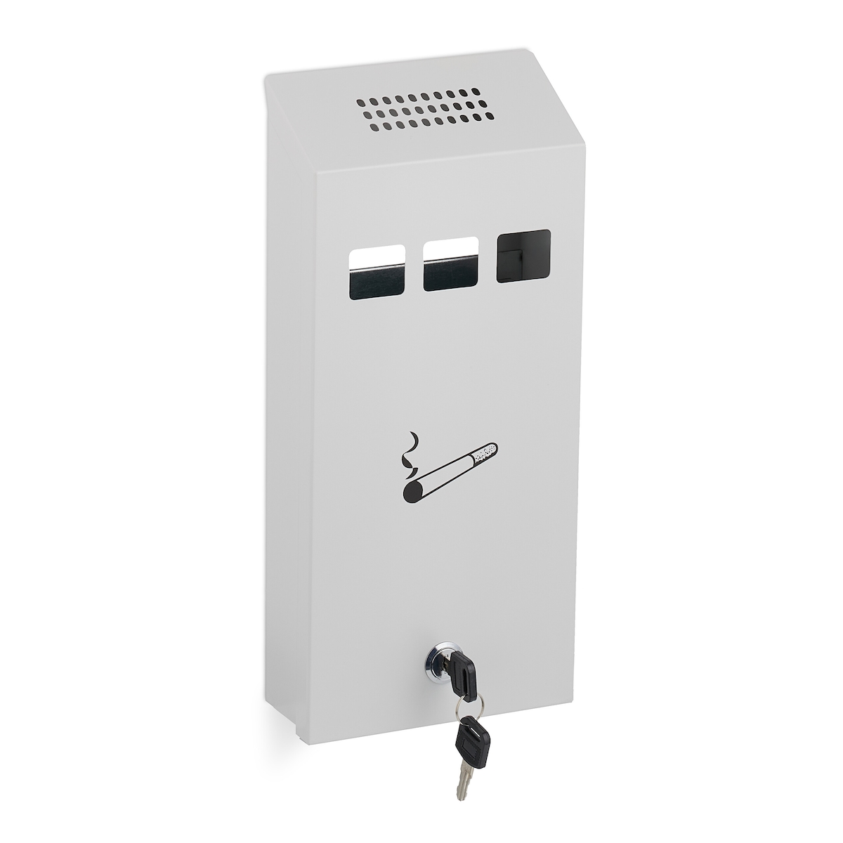 Relaxdays Wandaschenbecher für draußen, verschließbar, Metall, Aschenbecher Wandmontage, HxBxT: 32,5 x 15 x 6 cm, weiß