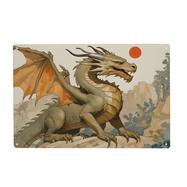 Metall Poster "Chinesischer Jugendstil Drache" artboxONE - Fiktion - Cool,Drache,Drachen,Jugendstil,Art deko,Artdeco,Asien,Fantasy,Fantasie