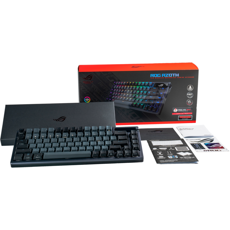 ASUS ROG Azoth X, 75%, Verkabelt & Kabellos, USB + RF Wireless + Bluetooth, Mechanischer Switch, RGB (90MP044F-BKWA30)