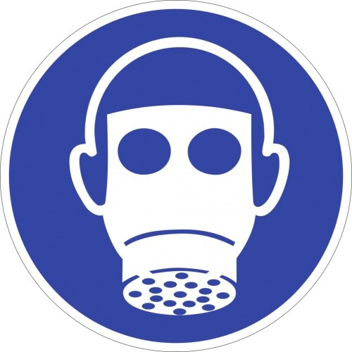 Gebotsschild, Atemschutz benutzen M017 - ASR A1.3 (DIN EN ISO 7010) - 50 mm Folie selbstklebend