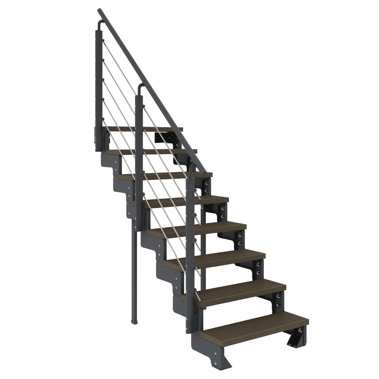 Außentreppe Intercon Hollywood anthrazit | mit 8 Stufen von 147-199 cm | 80 cm WPC-anthrazit | einseitiges Geländer