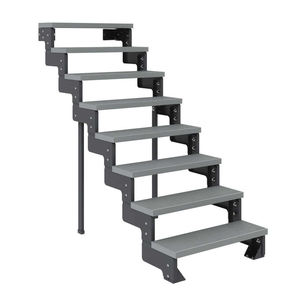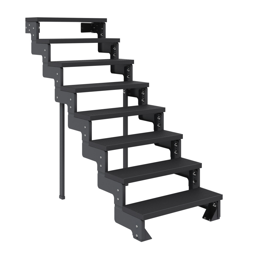 Außentreppe Intercon Hollywood anthrazit | mit 8 Stufen von 147-199 cm | 80 cm WPC-anthrazit | ohne Geländer
