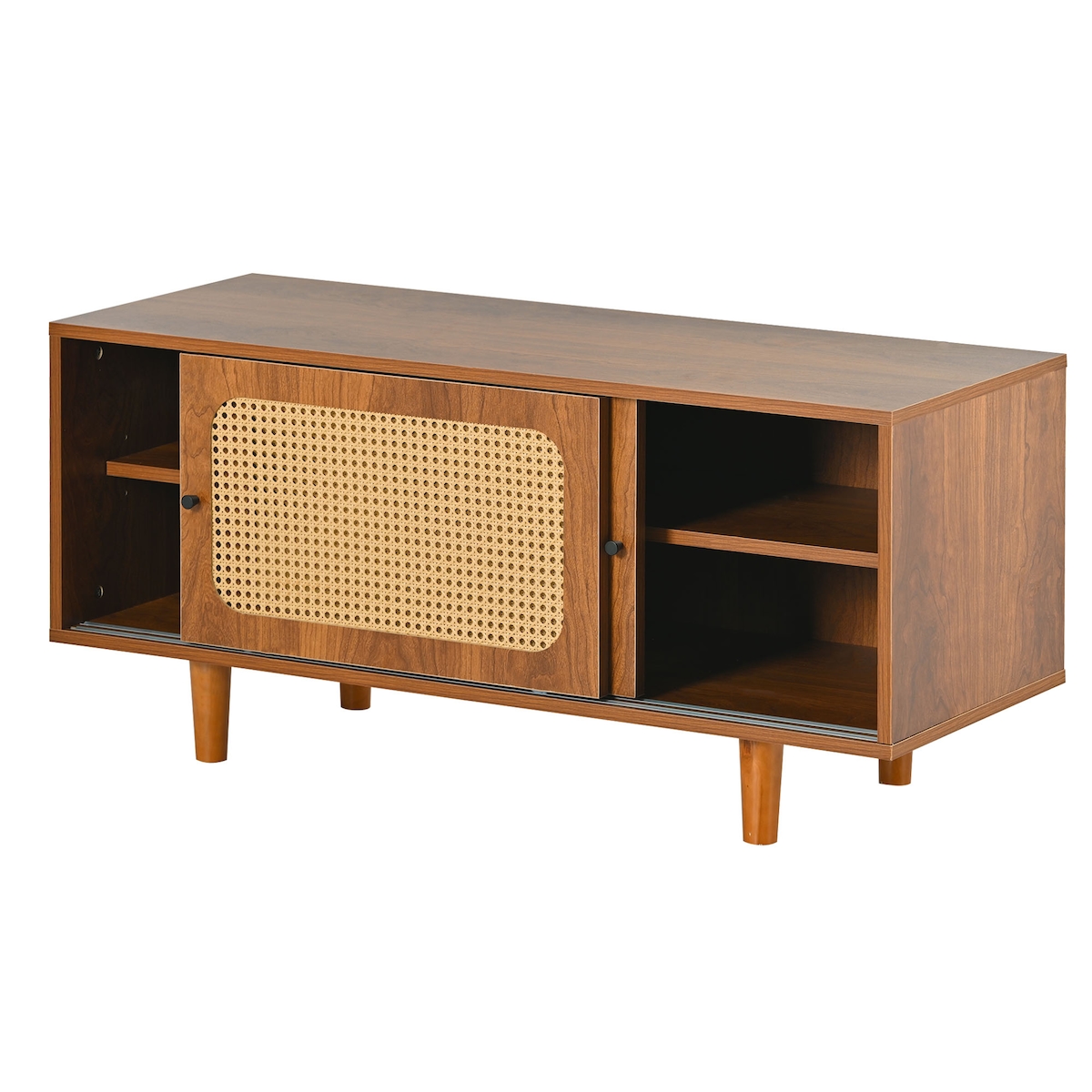 Rattan Sideboard Set Kommode 3 Türen Schuhschrank 2 Schiebetüren Aufbewahrung Bücher Deko Schuhe Multifunktional Walnuss