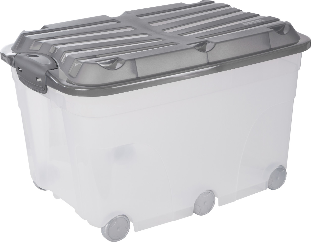 Kompakte Aufbewahrungsbox 70 Liter mit Deckel und Rollen, Kunststoff (PP), BPA-frei, grau/transparent, A3/70 Liter (57,0 x 39,5 x ...)