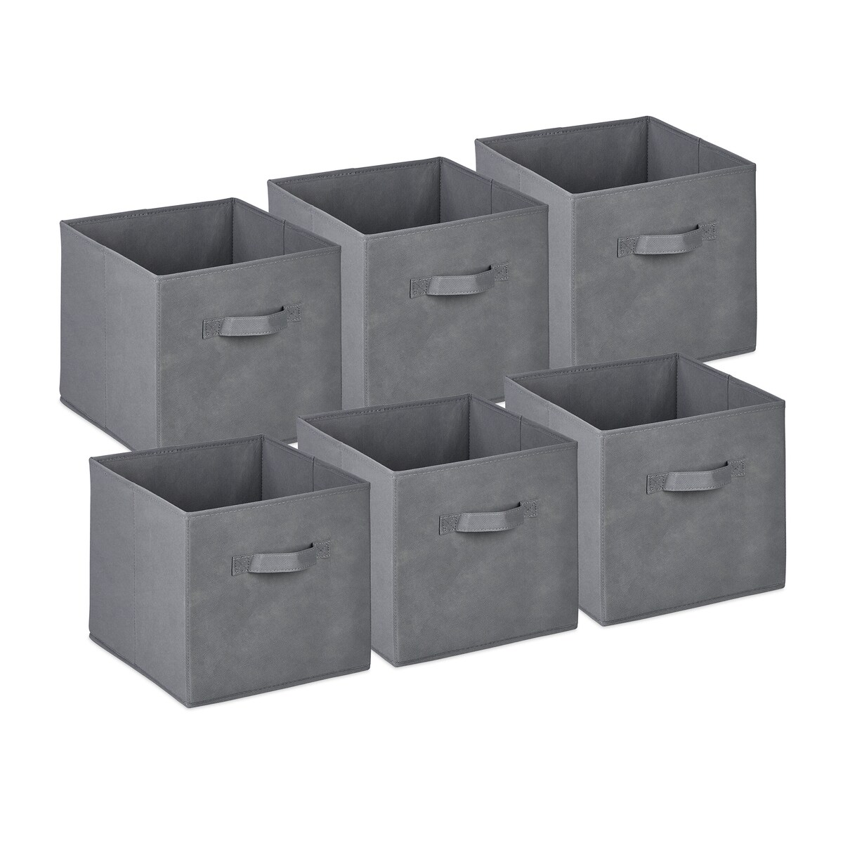 Relaxdays Aufbewahrungsbox, 19 l, Ordnungsbox aus Stoff, 6er-Set, HBT 26,5x28x28cm, faltbarer Regalkorb, Griff, hellgrau