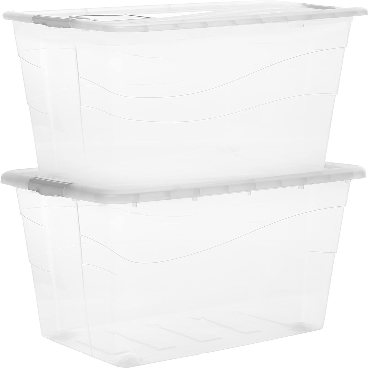 DEUBA Aufbewahrungsboxen 2 x 60l mit Deckel und Rollen, stapelbar, transparent Kunststoff BPA-frei Klickverschluss, RB60 für Büro, Garage, Wasc...