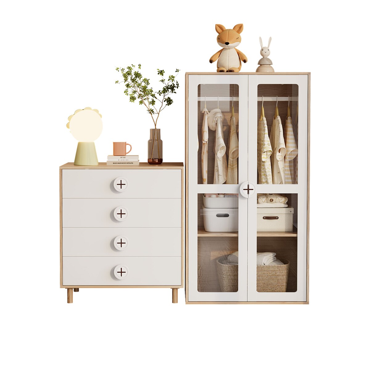 Kleiderschrank Kombination 80x50x150 Aufbewahrungssystem 10-stufig Kleiderstange 4 Schubladen verstellbare Regale Acryl Türen Weiß Natur modern